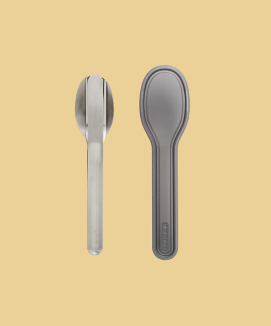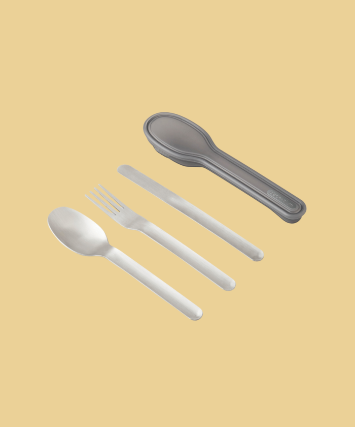 Fourchette, couteau et cuillère se rangent facilement dans un étui sobre et pratique, parfait pour les déplacements