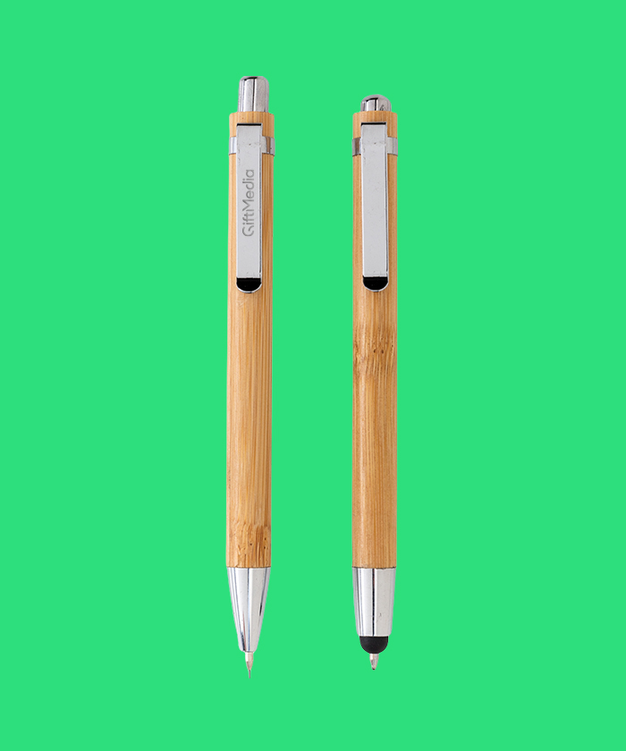 - Set de stylos en bambou dans une boite cadeau. Stylo/stylet à encre bleu et portemine avec 3 mines de 0,7mm