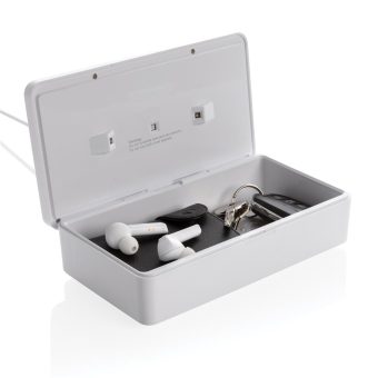 - Stérilisateur UV-C multifonctionnel qui tue jusqu'à 99,9% des bactéries placées à l'intérieur de l'appareil. Il vous suffit de placer des objets comme des écouteurs, des bijoux, des montres et des masques à l'intérieur pour les stériliser grâce à la technologie UV-C. Vous pouvez choisir de faire un nettoyage rapide en 90 secondes ou un nettoyage complet en 5 minutes. Les 2 LED UV-C à l'intérieur sont non toxiques, fabriquées sans mercure et ont un cycle de vie de 10 000 heures. Son design garantit également que la lumière LED UV-C s'éteint automatiquement lorsque la boîte est ouverte, de sorte que l'utilisateur ne soit pas exposé à la lumière UV-C. Câble de 100 cm en TPE de type C inclus. Entrée : 5V/1.5A
