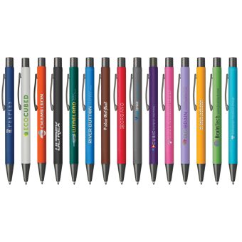 - Notre fameux stylo bille Bowie en finition gomme et attributs chromés mats, superbement gravé pour révéler une finition miroir exceptionnelle ou un marquage numérique ColourJet pour un maximum d’impact. Ce stylo bille possède un design ergonomique est équipé d'une cartouche d'encre allemande Eversmooth Elite qui offre une expérience d'écriture unique grâce à sa bille premium en carbure de tungstène d'1.2mm. Disponible dans une superbe gamme de 15 couleurs.
