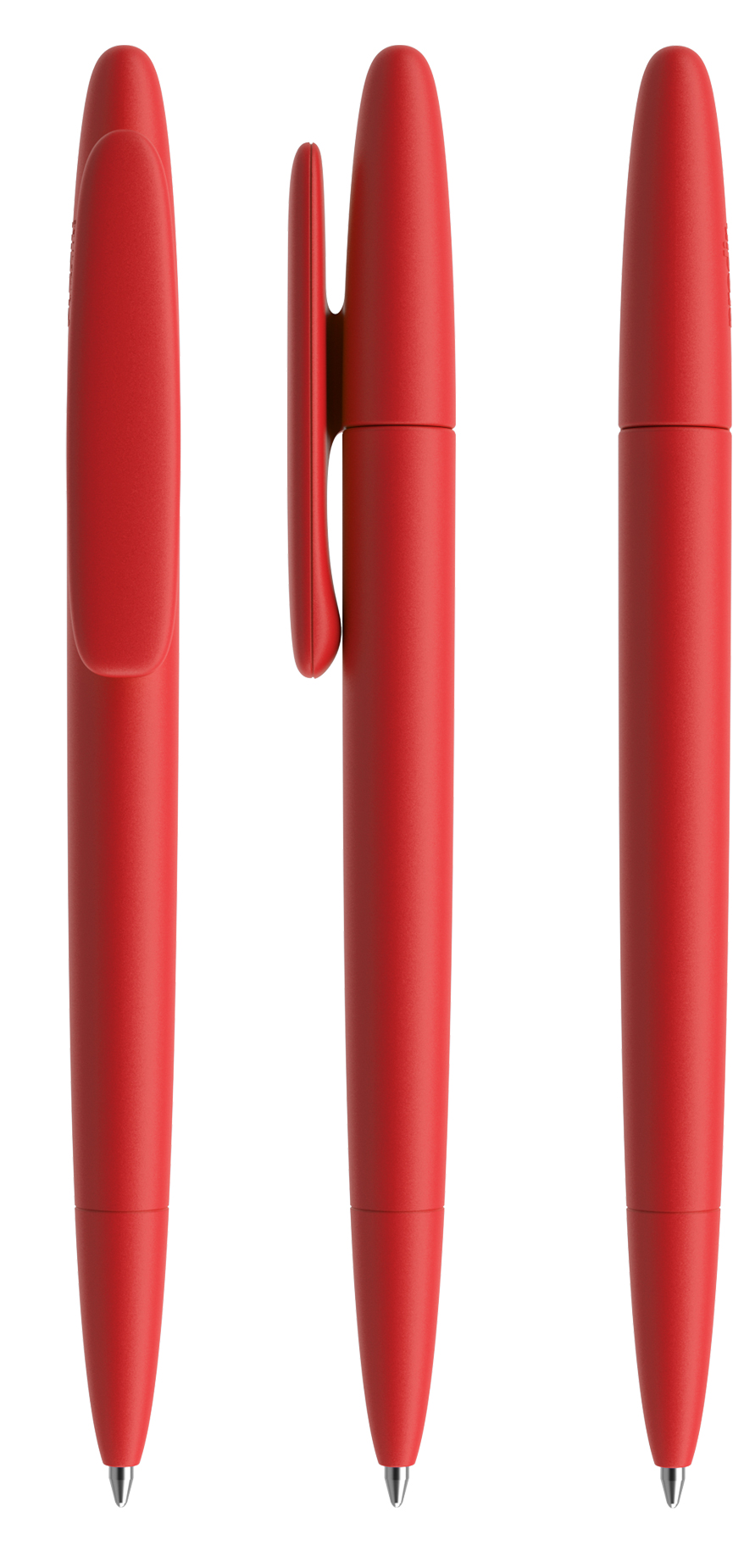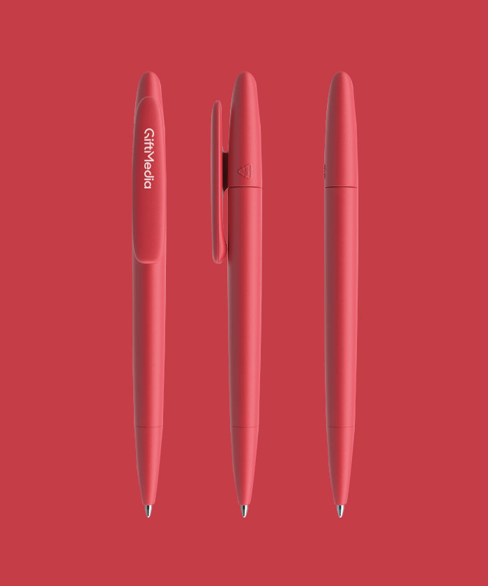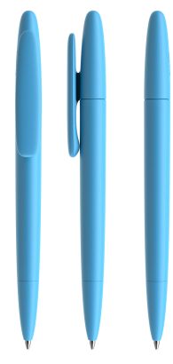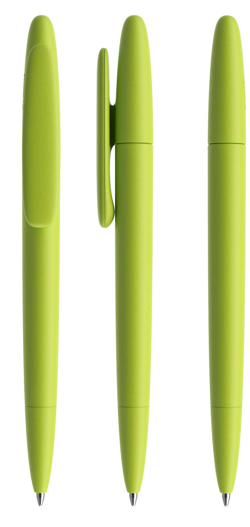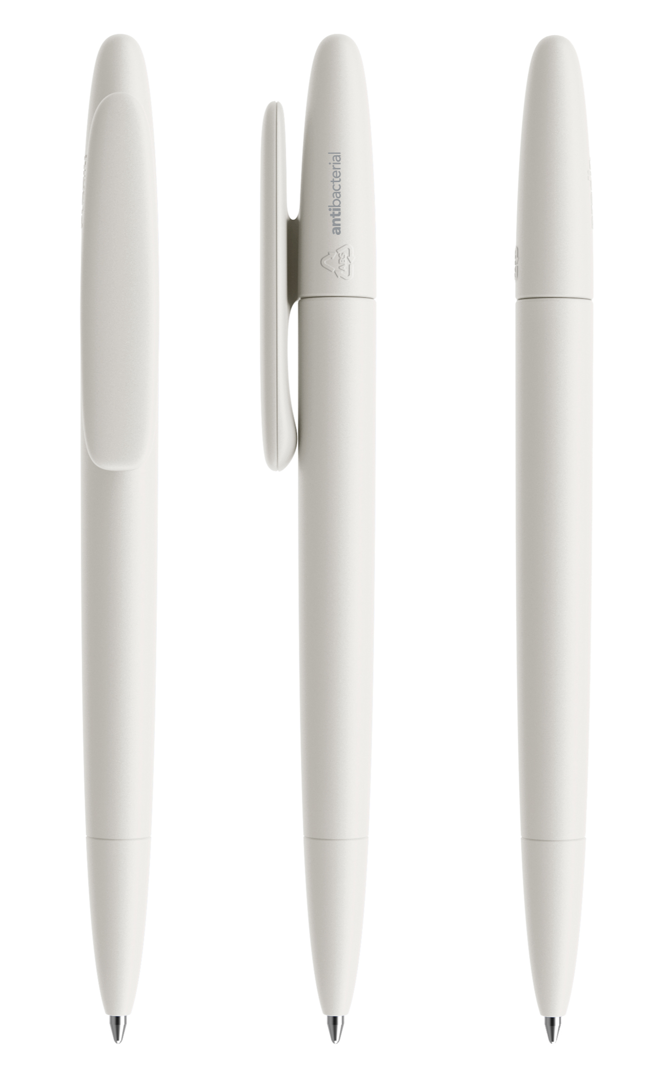 - Stylo à bille à poussoir et corps en plastique (ABS), composé à 30% de recyclat (standard) ou 100% (Regenerated). Version standard avec 30% de matériau recyclé disponible avec les surfaces givrée, transparente, mate, polie et mate vernie et dans de nombreuses couleurs. Également dans une haptique veloutée Soft touch. Couleurs spéciales PMS dès 10 000 pièces. Pointe en métal chromée ou satinée en option. Option Clip Cover exclusivement disponible pour la surface Soft touch. Mix & Match de couleurs sur une même surface. Cinq zones d'impression, agrafe imprimable en plusieurs couleurs (jusqu'à six).