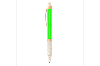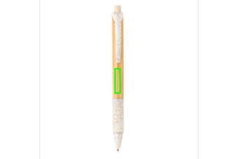 - Stylo au design unique combinant deux matériaux durables, le bambou et la fibre de paille de blé (composition : 60% de paille de blé et 40% ABS). Encre bleue Dokumental® de fabrication allemande pour +/- 1200m d’écriture et bille en carbure de tungstène assurant une écriture régulière.