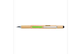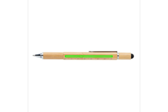 - Stylo multifonction en bambou avec règle (7 cm), niveau à bulle, tournevis, pointe de stylet et stylo à bille avec encre bleue (jusqu'à 400 m) Fabriqué en bambou avec clip en aluminium