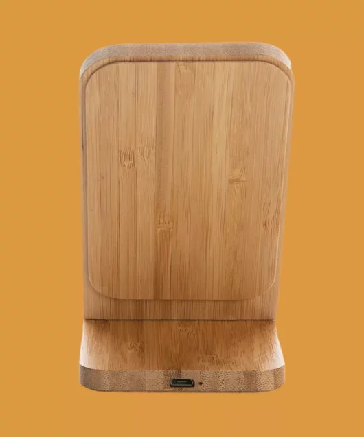 Support avec chargeur sans fil 5W en bambou certifié FSC 100%.