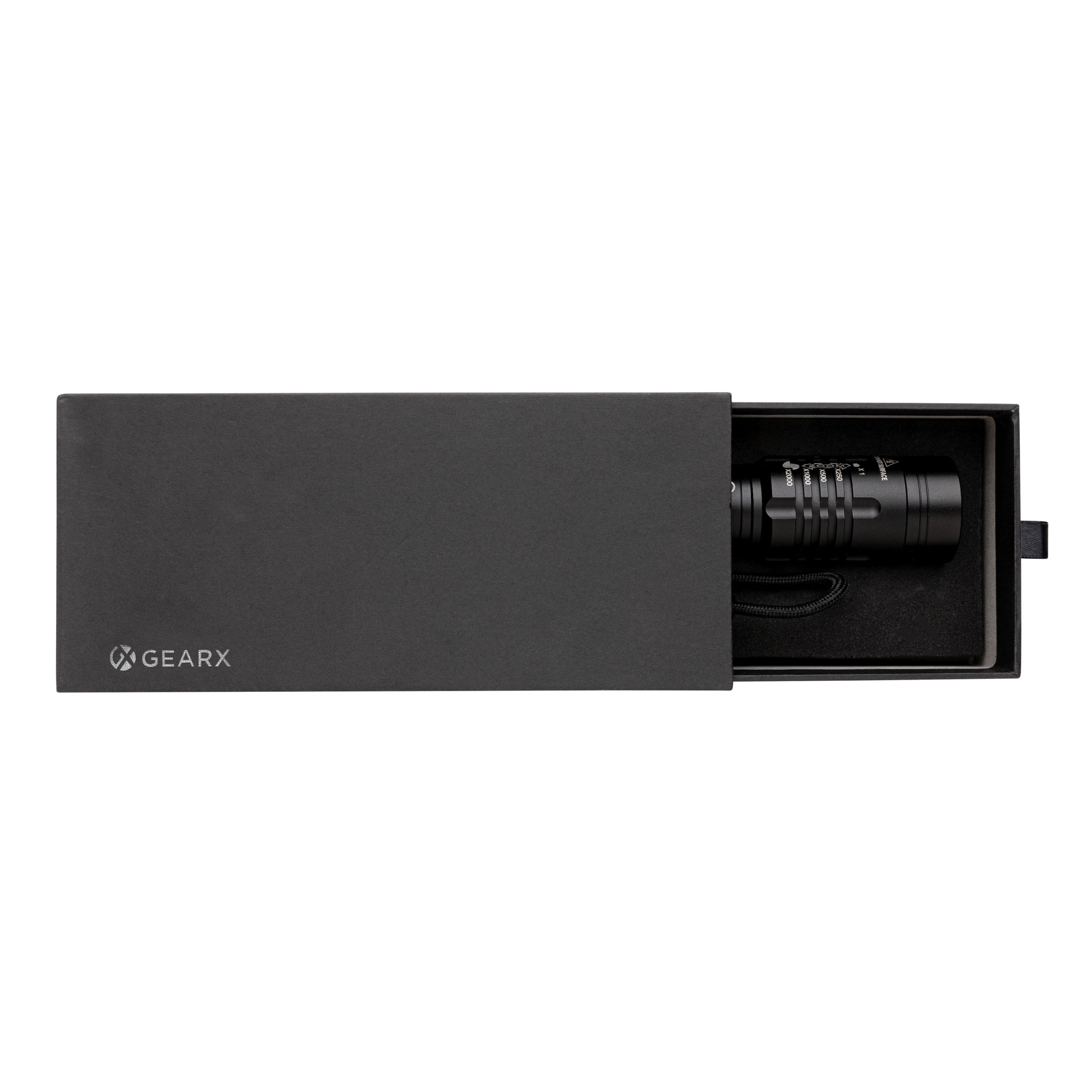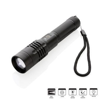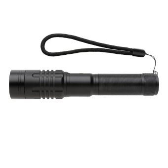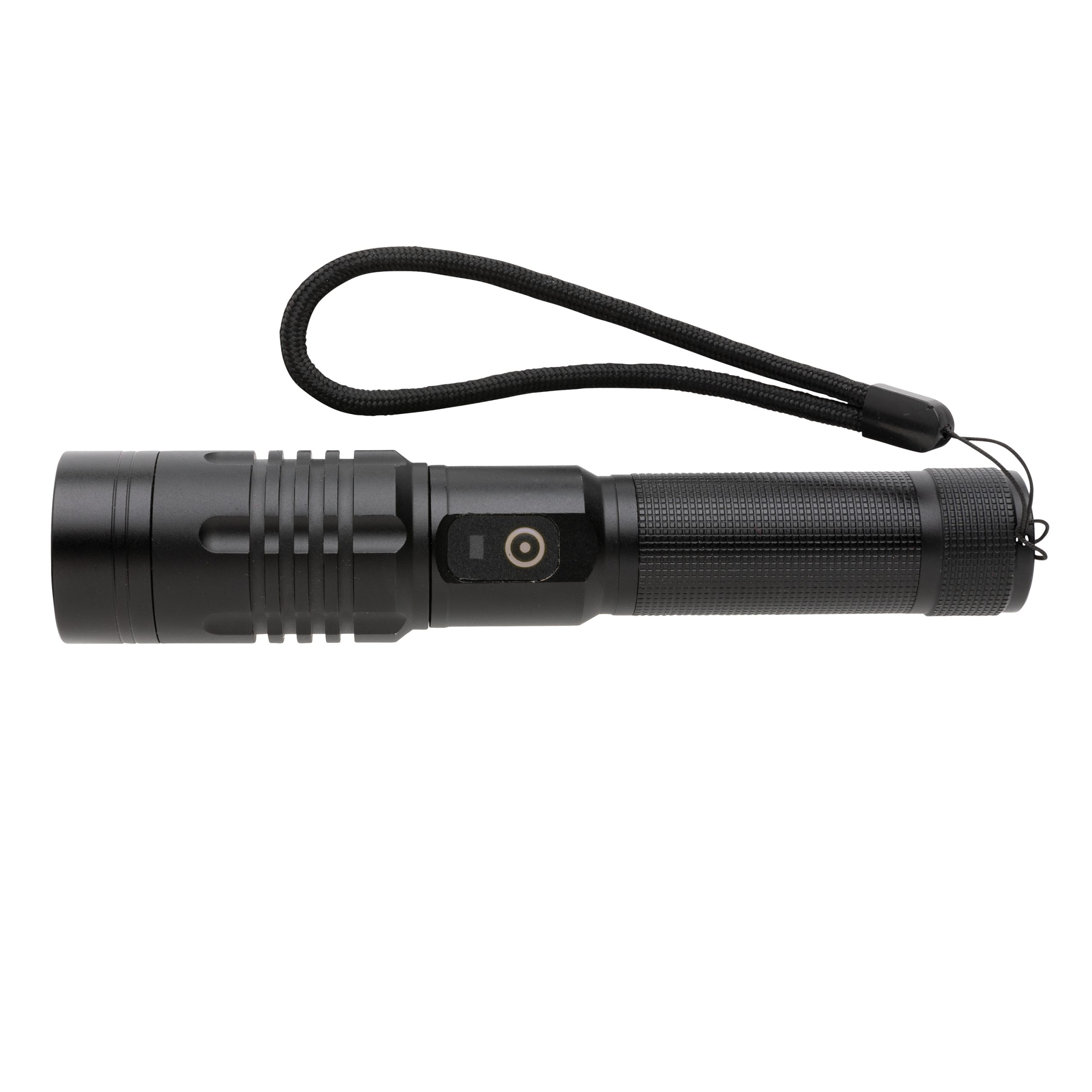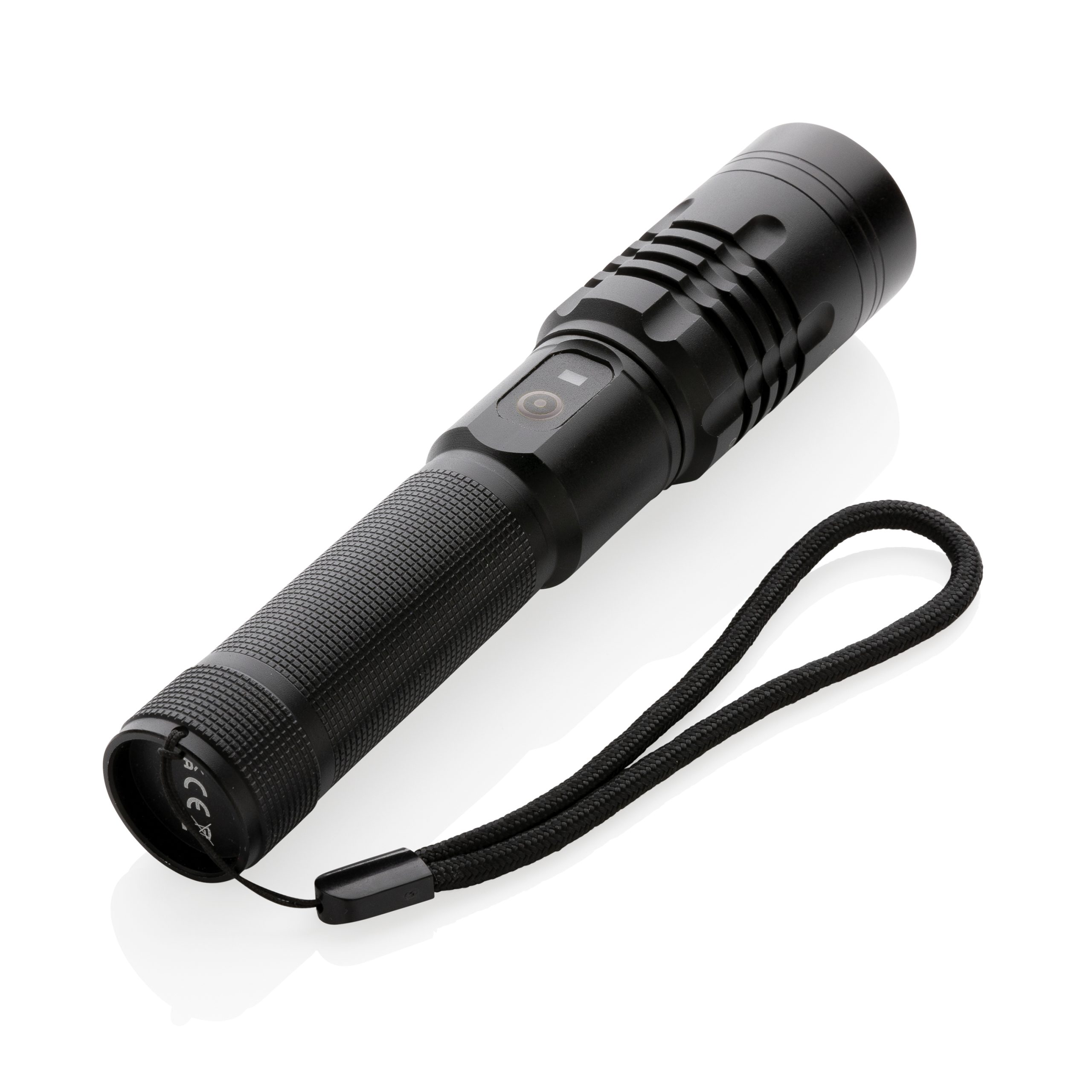 Lampe de poche rechargeable avec le corps en alliage d'aluminium de qualité et une batterie 2000 mAh pour une utilisation jusqu'à 4 heures sur une seule charge (via USB)