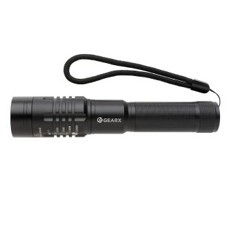 - Lampe de poche rechargeable avec le corps en alliage d'aluminium de qualité et une batterie 2000 mAh pour une utilisation jusqu'à 4 heures sur une seule charge (via USB). Grâce à son indice IPX4, elle est résistante aux intempéries et peut donc facilement être utilisée à l'extérieur. L'ampoule puissante crée jusqu'à 1000 lumens et un faisceau qui atteint jusqu'à 500 mètres. L'ampoule de haute qualité est dotée de 5 modes, dont la fonction SOS