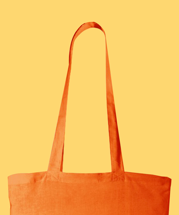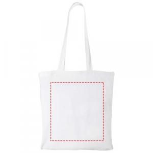 Sac shopping avec compartiment principal ouvert. Hauteur des anses de 30 cm. Coton, 100 g/m2.