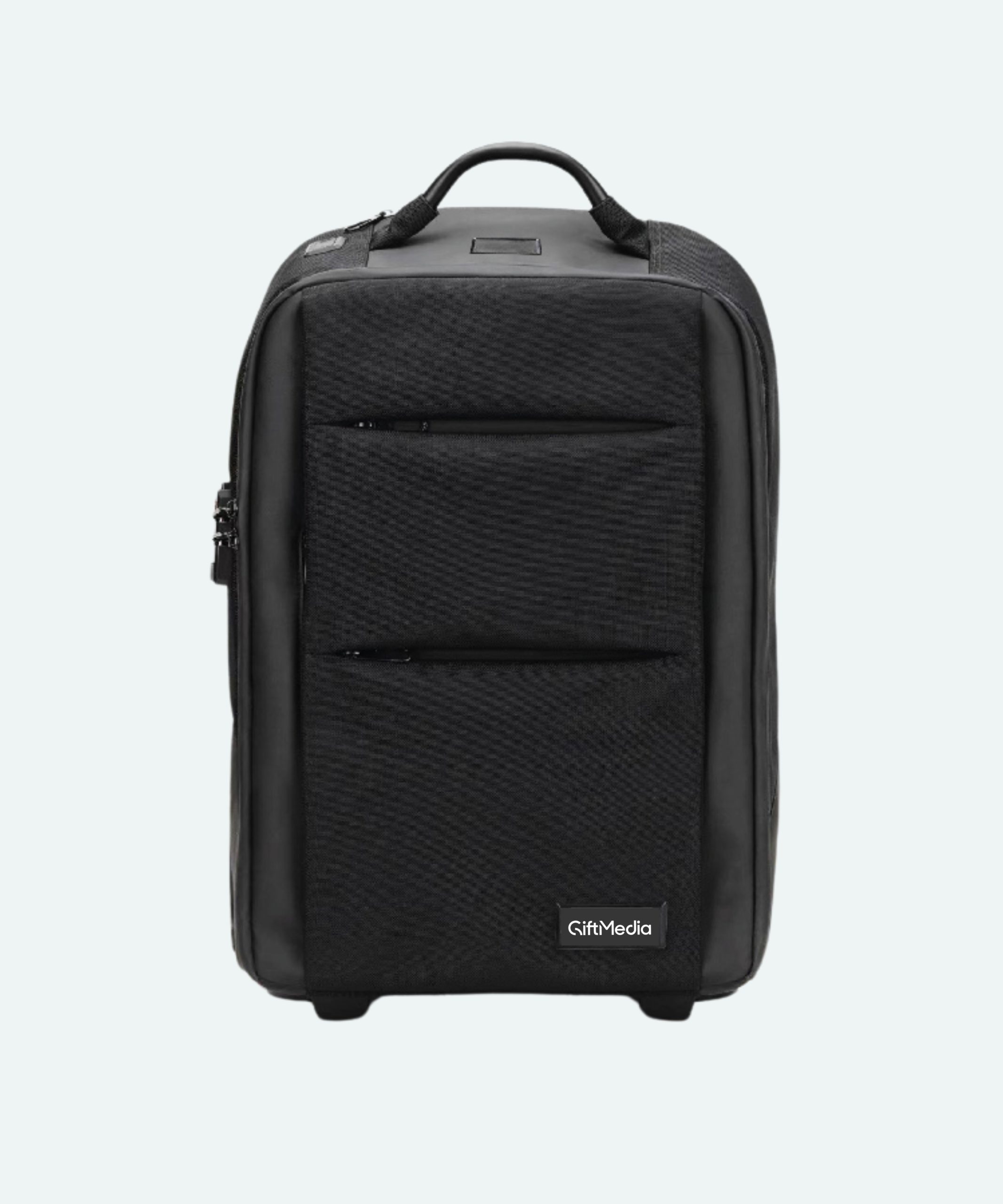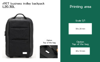 - Ce trolley business convertible en sac à dos est conçu pour les professionnels en mouvement. Fabriqué en rPET imperméable (équivalent à 31 bouteilles recyclées), il allie durabilité et fonctionnalité. Sa structure rigide protège vos effets personnels, tandis que le compartiment rembourré accueille un ordinateur jusqu’à 15,6". Il est équipé d’une batterie amovible à charge rapide de 10 000 mAh, d’un câble lumineux 3-en-1 en rPET, et d’un connecteur USB/micro USB accessible depuis l’extérieur. La fonction sac à dos est facilement activable via une poche arrière dissimulant des bretelles. Sécurité renforcée avec cadenas TSA et pochette anti-RFID