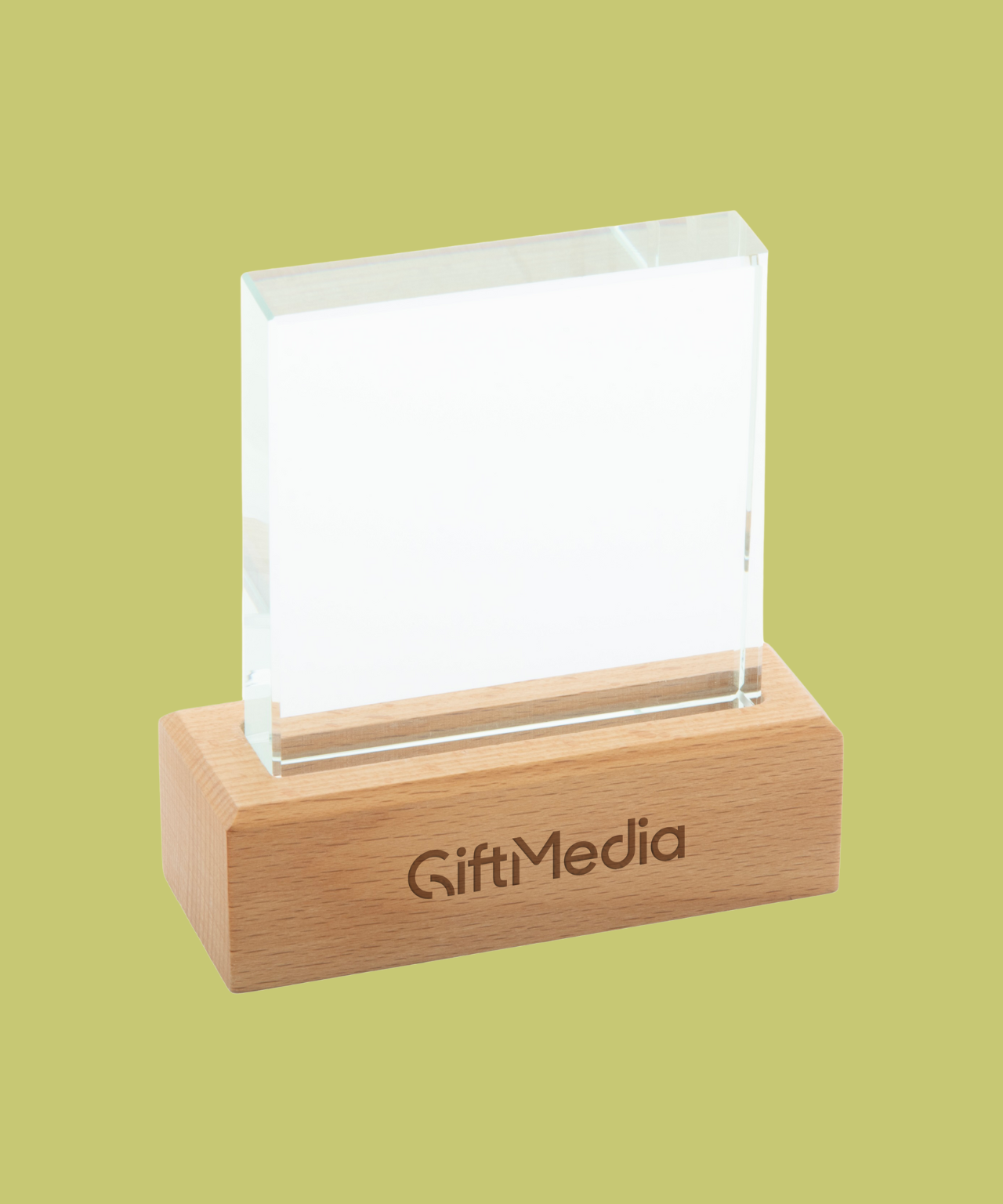 - Trophée en verre avec socle en bois de hêtre. Livré dans une boîte cadeau kraft.
