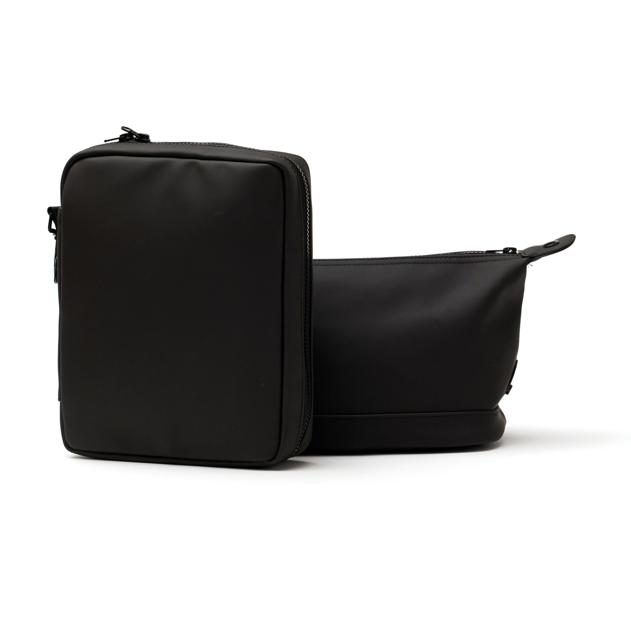 - Trousse de toilette qui est non seulement pratique et maniable, mais aussi minimaliste avec un design moderne. La trousse est fabriquée à partir d’un matériau hydrofuge. La trousse se ferme avec une fermeture éclair et est idéal pour les voyages. Fabriqué en cuir nubuck végan qui confère au sac ses propriétés hydrofuges