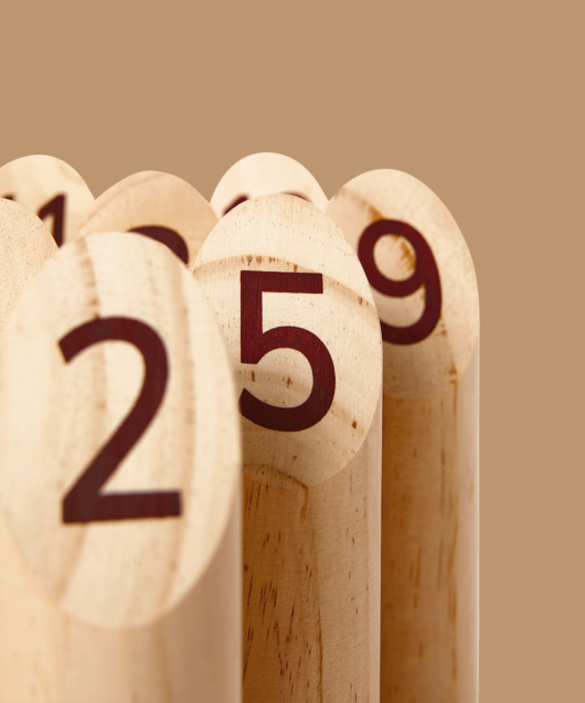 Un jeu d'extérieur amusant et tactique contenant douze cylindres numérotés et un bâton de lancer