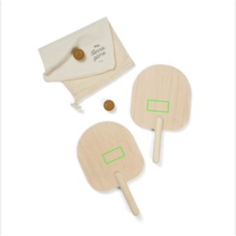 - Jeu de raquette de plage populaire, facile à apprendre et adapté aux adultes comme aux enfants. Il s'agit d'une activité amusante à pratiquer à la plage, dans le parc ou à la maison dans le jardin. Deux raquettes et deux balles en caoutchouc sont incluses et le jeu est livré dans un sac en coton, ce qui permet de l'emporter facilement. Ce jeu n'est pas destiné à être utilisé dans l'eau. Les raquettes sont fabriquées en contreplaqué de haute qualité certifié FSC®, ce qui garantit que le bois provient de forêts gérées de manière responsable. Raquettes : 35x21cm.