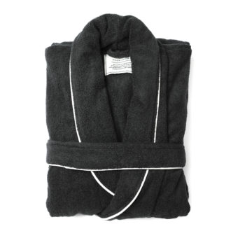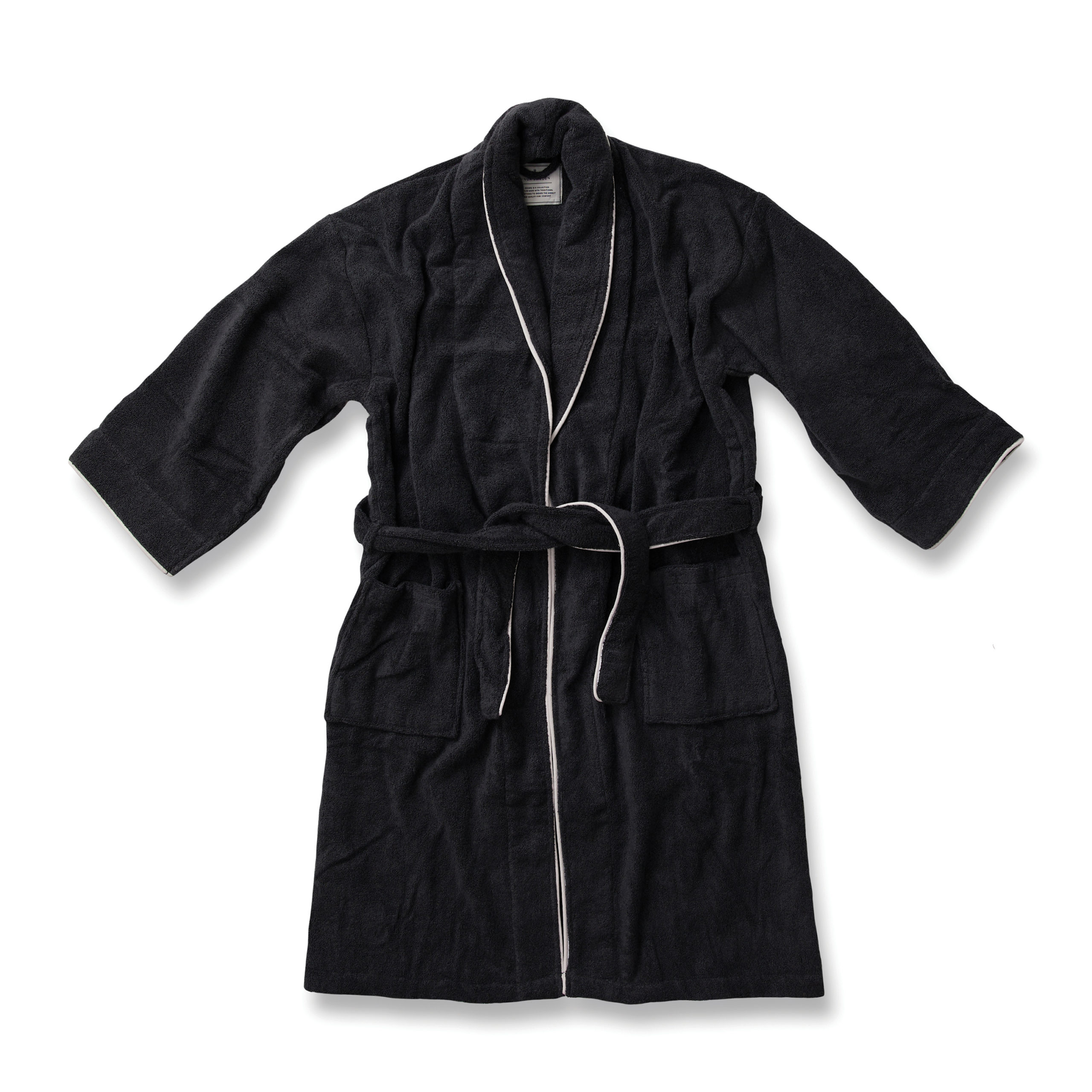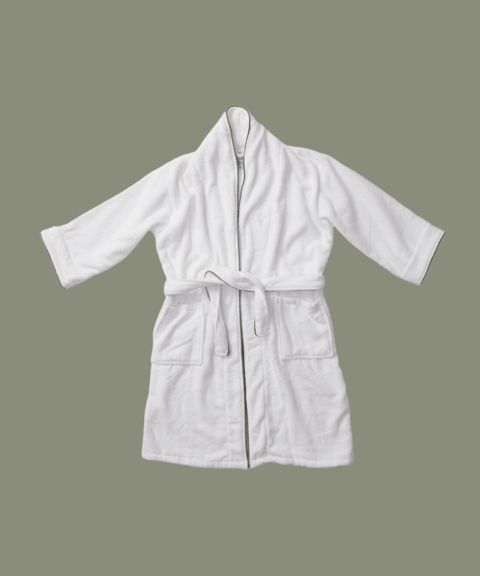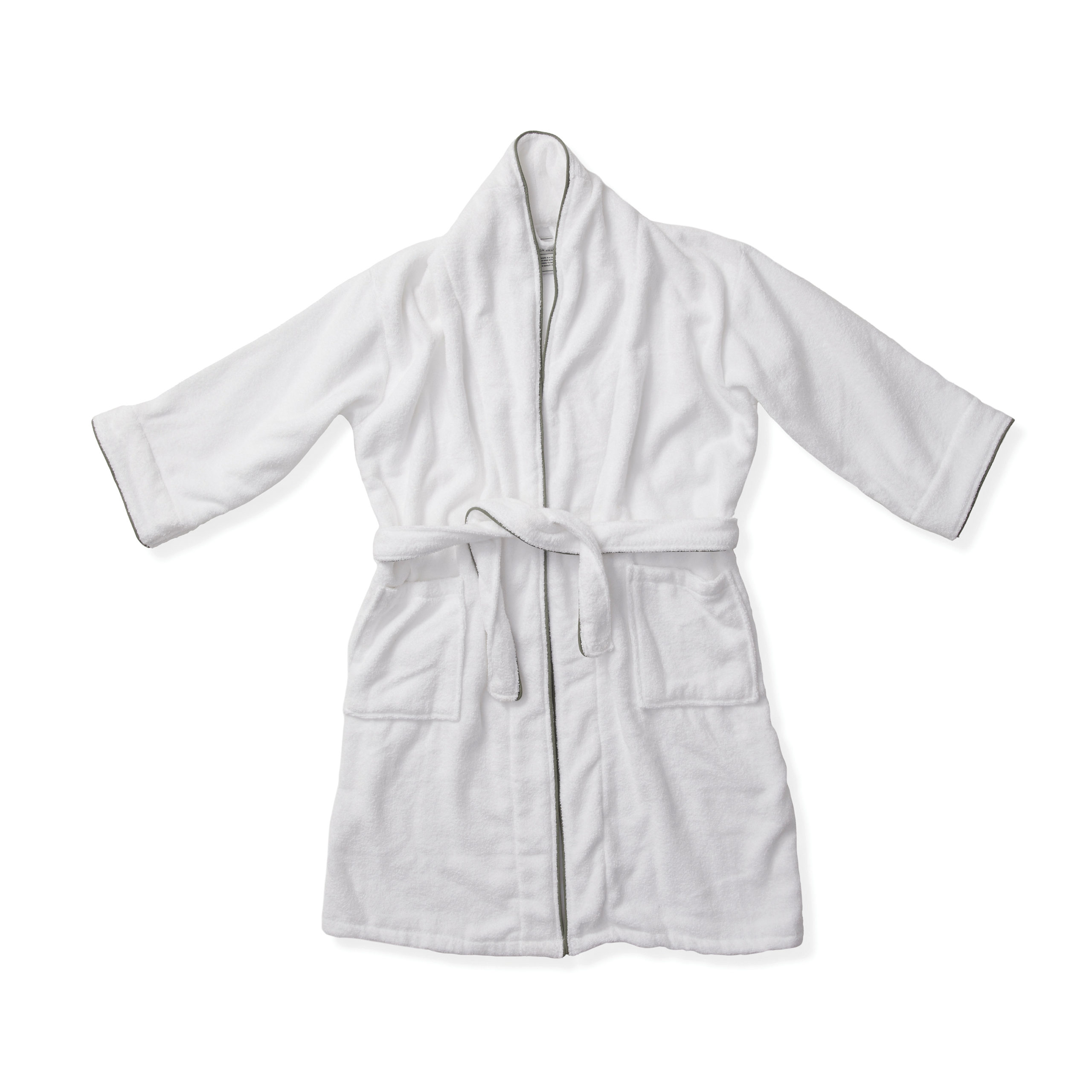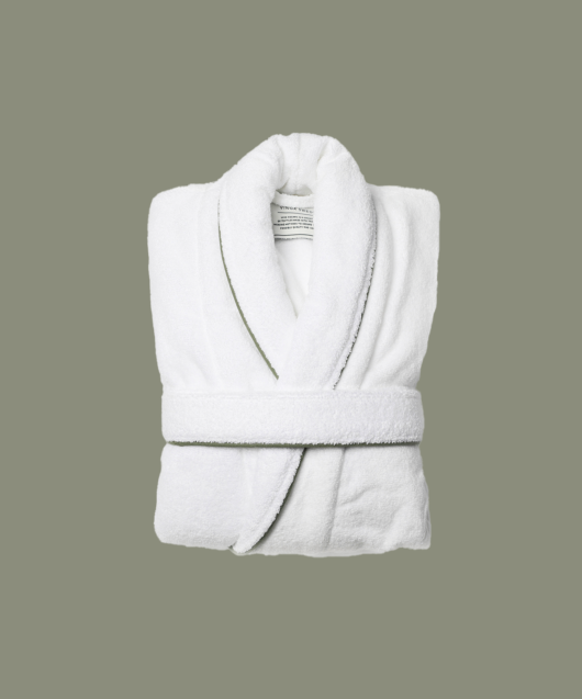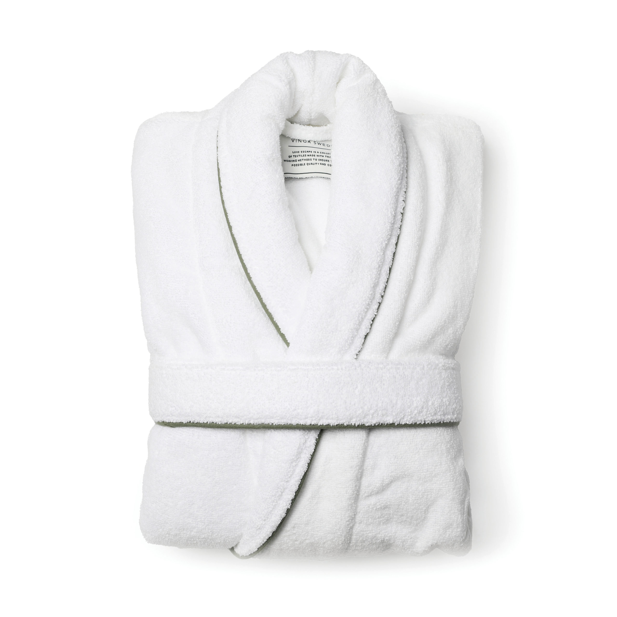 - Peignoir luxueux 100% coton. Le peignoir est un modèle classique avec un col extra large et une ceinture à la taille. Il présente également plusieurs détails sympathiques, tels que des coutures fermées et un passepoil contrastant sur le col. Fabriqué à partir d'une longue fibre de coton avec des fils non tordus. Le résultat est un peignoir incroyablement doux que vous ne voudrez jamais enlever.