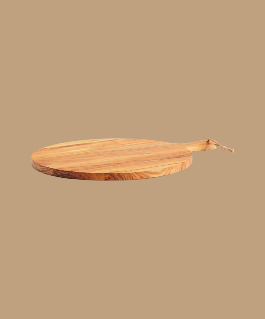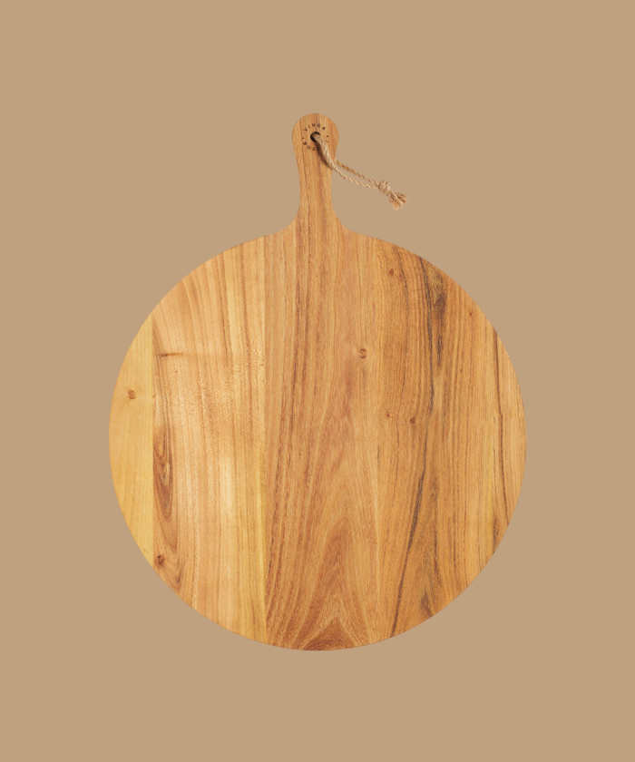 - Planche à découper ronde qui, grâce à sa grande taille et à son design décoratif, peut également être utilisée pour le service. Une poignée pratique simplifie encore le processus de manipulation et de service. La planche est fabriquée en teck certifié FSC® et présente une belle surface de bois dorée à brun moyen qui s'assombrit avec le temps. La teneur élevée en huile confère à la planche une protection efficace et la maintient en bon état pendant longtemps.