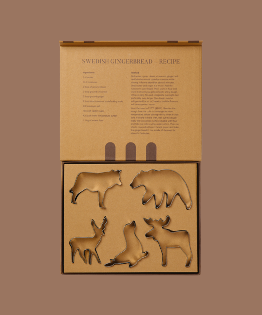 - Ensemble de 5 emporte-pièces en acier inoxydable. Chaque emporte-pièce présente une forme d'animal scandinave. Durables et faciles à nettoyer. Livré dans une boîte cadeau, le couvercle intérieur de la boîte présente une recette de biscuits au gingembre, ajoutant une touche scandinave authentique à vos aventures culinaires.